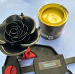 This artwork is built up on a central yellow rose, made out of dripping yellow paint. A yellow rose is a common symbol for jealousy. The yellow paint is dripping from the rose, turning a normal, neutral element into a jealous/envy symbol. All around the rose it is being attacked by nails, symbol for all the influences turning it into a jealous symbol. Added in front is a mouse pointer as a symbol for the influences of everything available online. The cubical is finalised in front and in the back with the english translation of the part of the original texte of Dante on which this artwork is based.